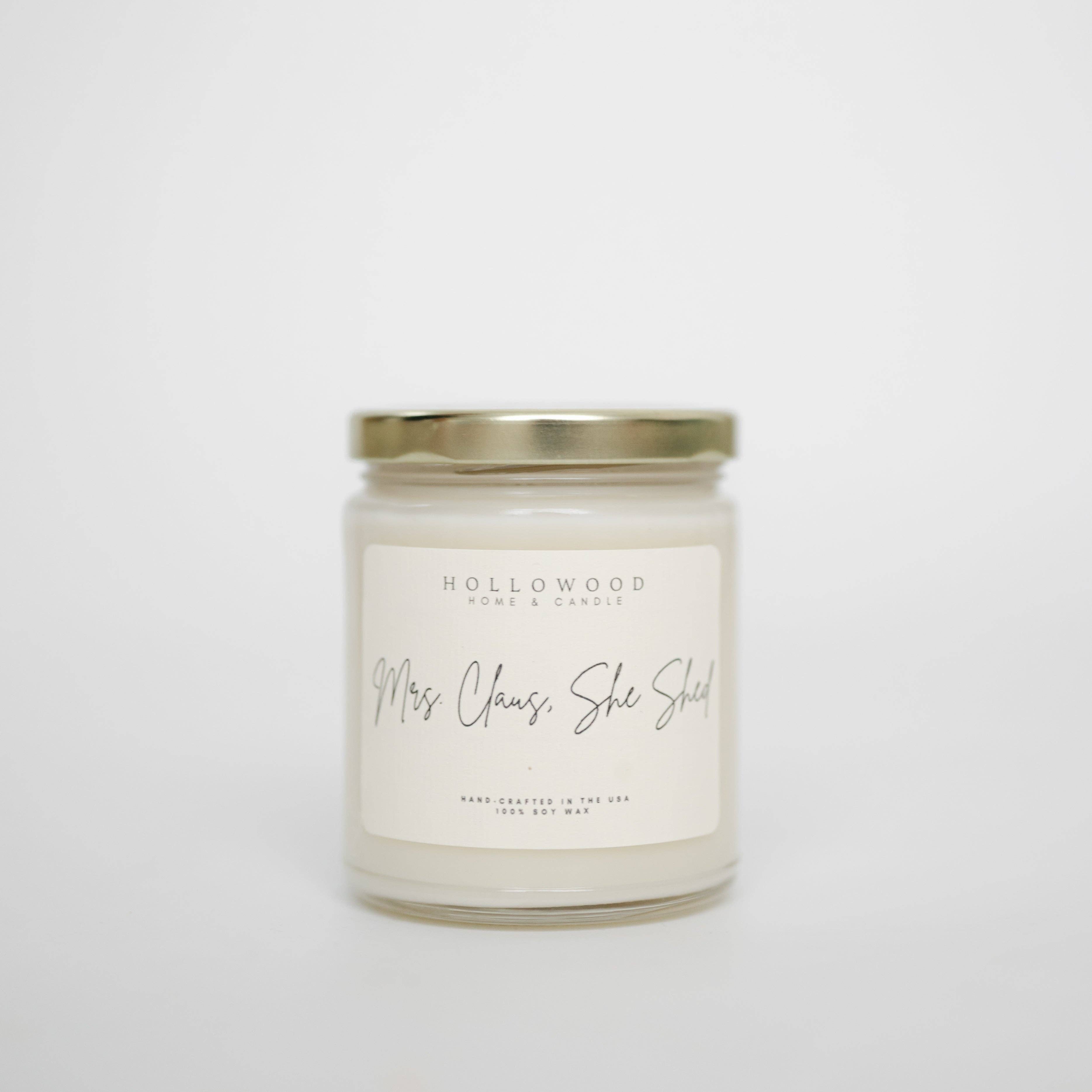 Mrs. Claus', She Shed celebrates the holidays and holiday traditions. Featuring an aromatic blend of orange spice notes from the kitchen, fir and pine notes from the Christmas tree, and an earthy smokiness from the fireplace, the candle has a top of cinnamon, ginger, and orange peel; middle of clove and cypress; and base of pine and fir. Perfect for holiday decor and gift giving.