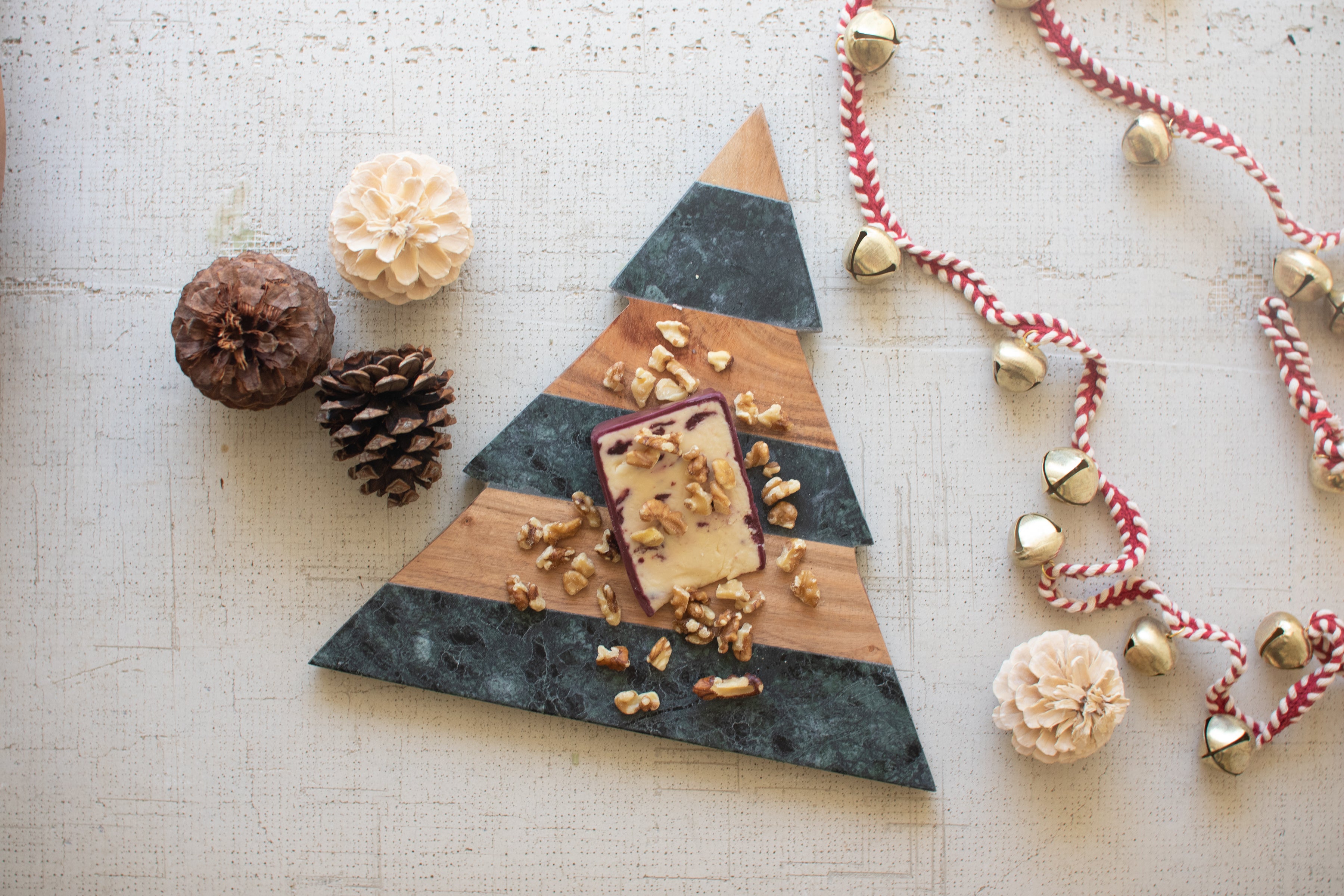 Green Marble and Acacia Wood Christmas Tree Cutting Board