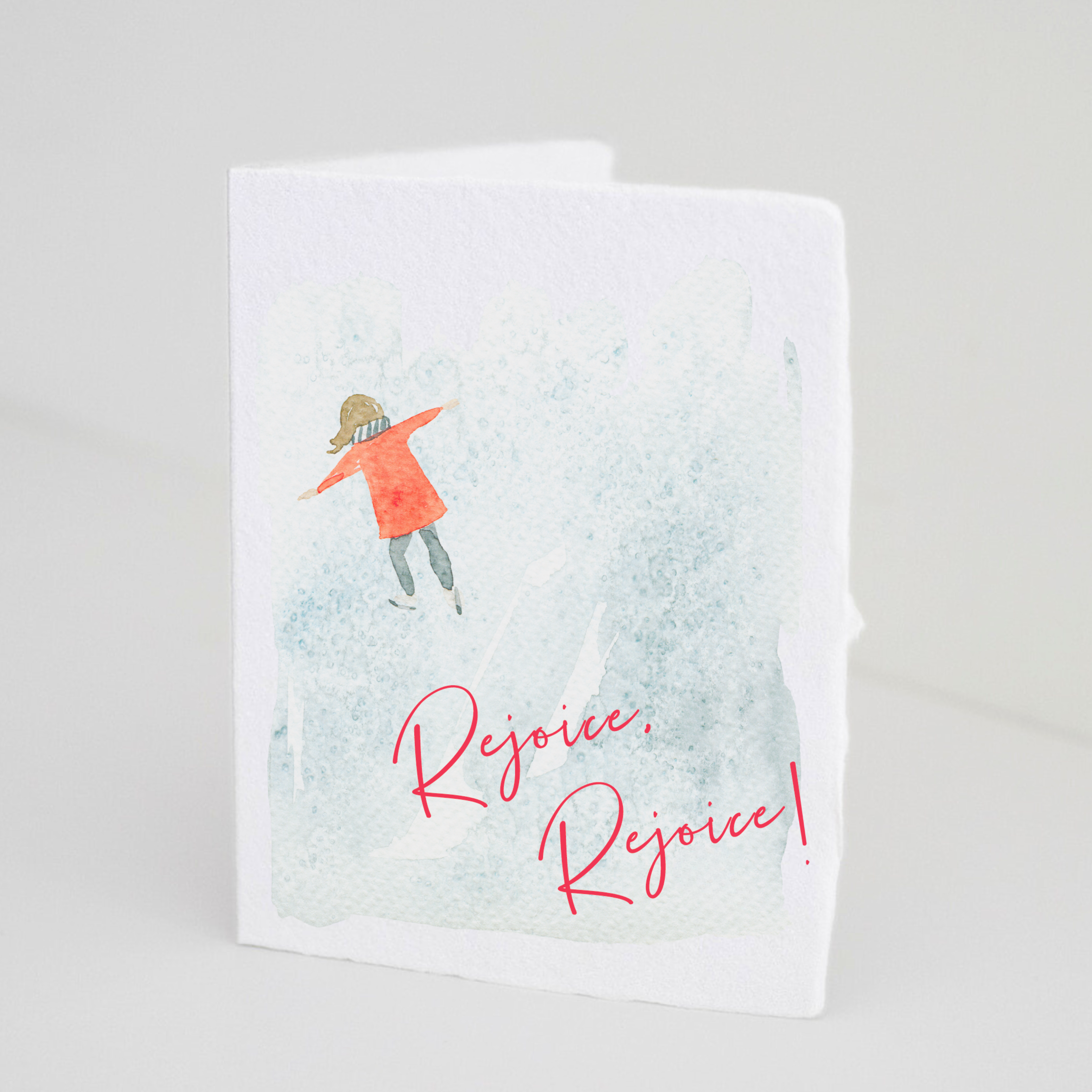 "Rejoice" Skating Christmas Holiday Folded Greeting Card